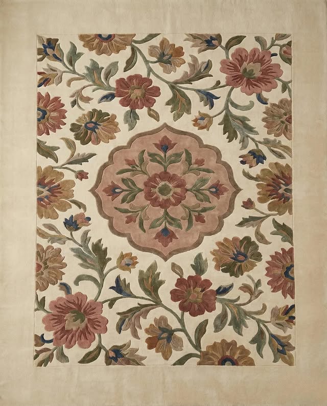 Colorful floral carpet adding warmth to living space