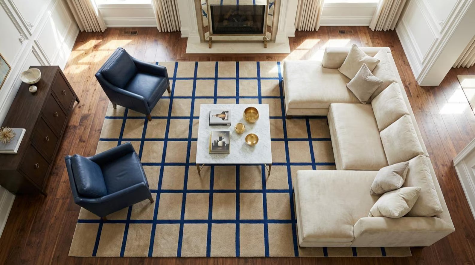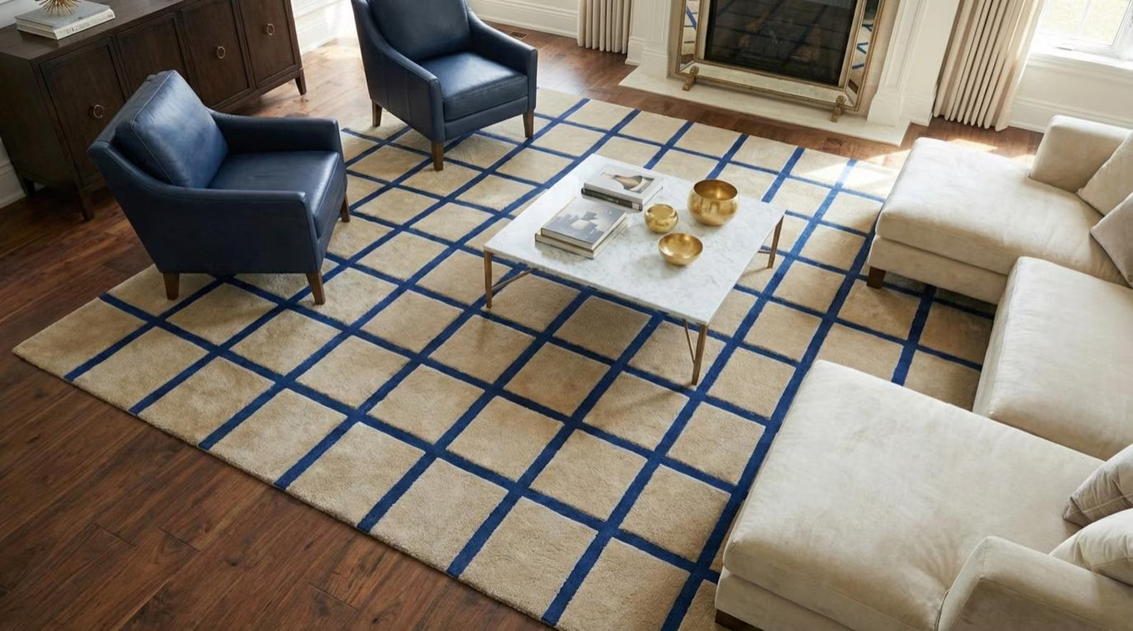 Geometric pattern carpet in a modern living room