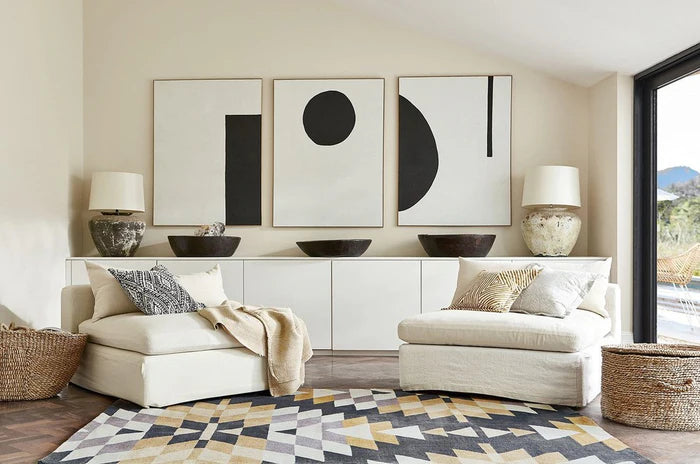 Geometric pattern carpet in a modern living room