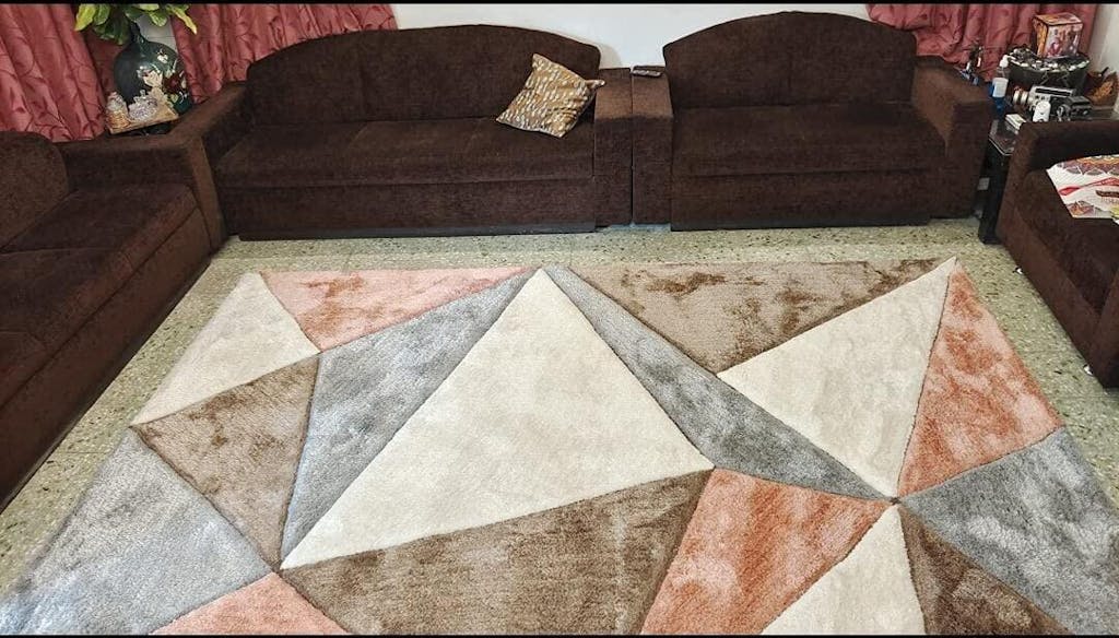 Geometric pattern carpet in a modern living room