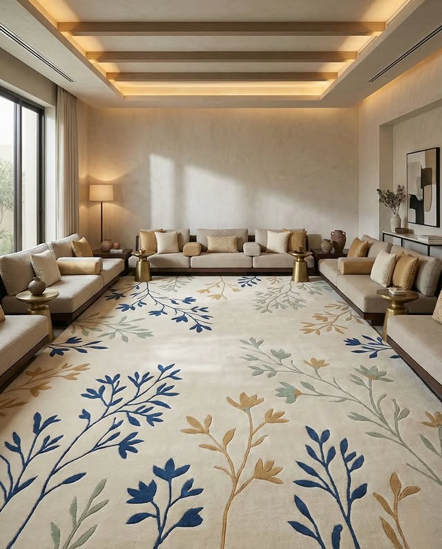 Colorful floral carpet adding warmth to living space