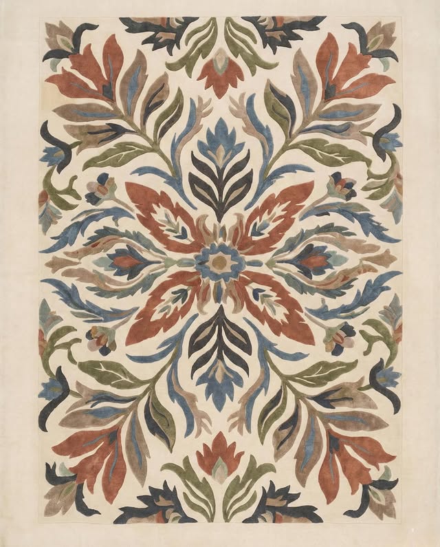 Colorful floral carpet adding warmth to living space