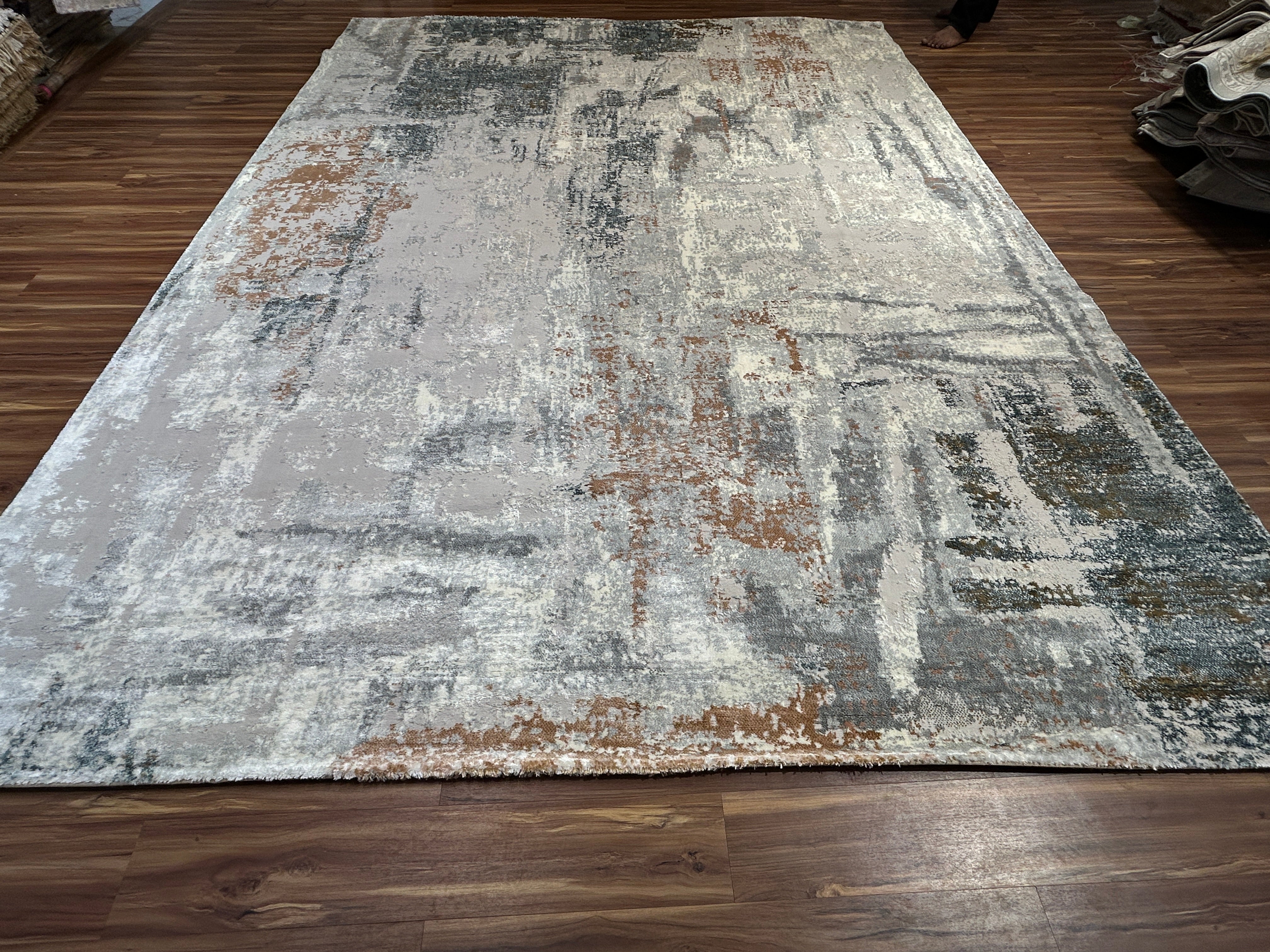 Expertly crafted from a refined blend of Viscose Silk and Acrylic Wool, this luxury carpet delivers a rich sheen, exceptional softness, and lasting durability—perfect for elegant living spaces.