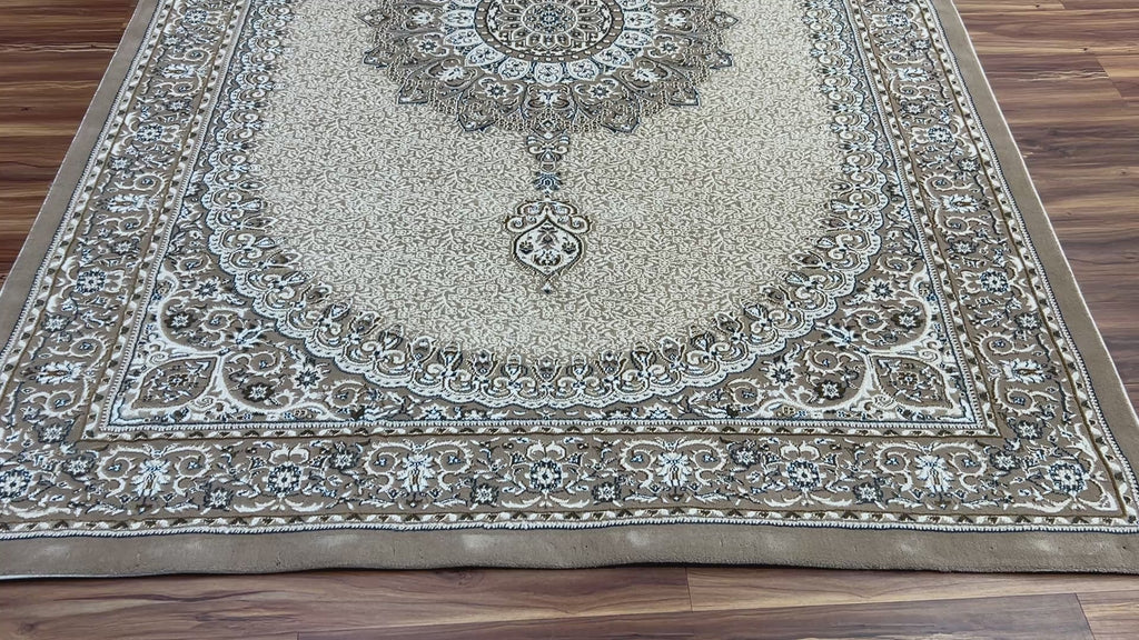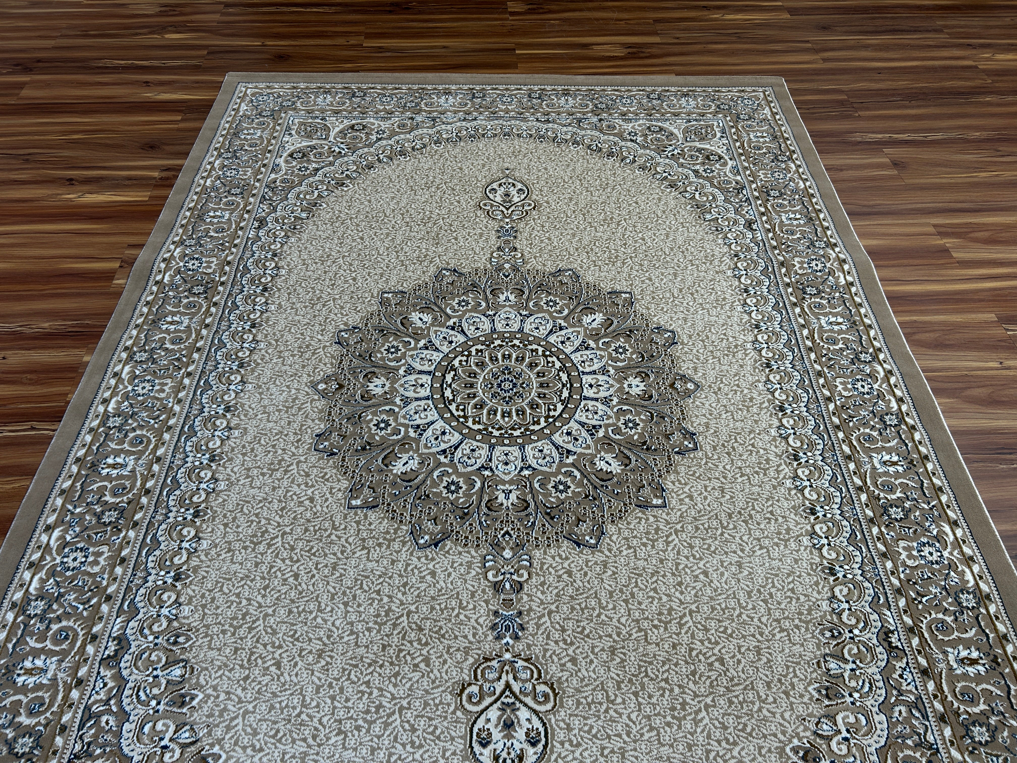 Expertly crafted from a refined blend of Viscose Silk and Acrylic Wool, this luxury carpet delivers a rich sheen, exceptional softness, and lasting durability—perfect for elegant living spaces.