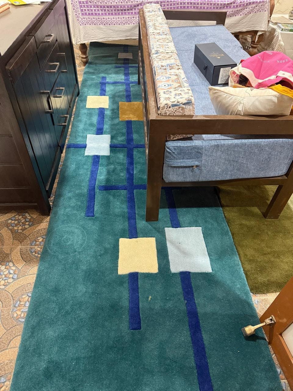 Geometric pattern carpet in a modern living room